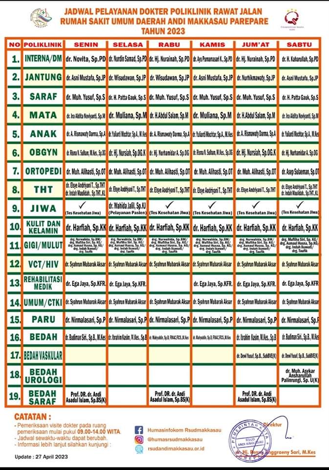 PAREPARE, RADIOMESRA. COM – Pelayanan kesehatan di Rumah Sakit Umum Daerah (RSUD) Andi Makkasau Kota Parepare kembali normal pasca libur nasional dan cuti bersama Hari Raya Idul Fitri 1444 Hijriyah, Rabu (26/04/23).Hari pertama berkantor pelayanan langsung efektif, dan aktivitas seluruh ruangan di RSUD Andi Makkasau sudah normal.