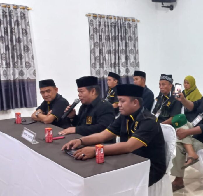 Penyerahan berkas bacaleg dipimpin Ketua Partai Ummat, Hisbullah didampingi pengurus dan sejumlah bacalag, di antaranya HA Rahman Saleh, H Ibrahim Mukti.