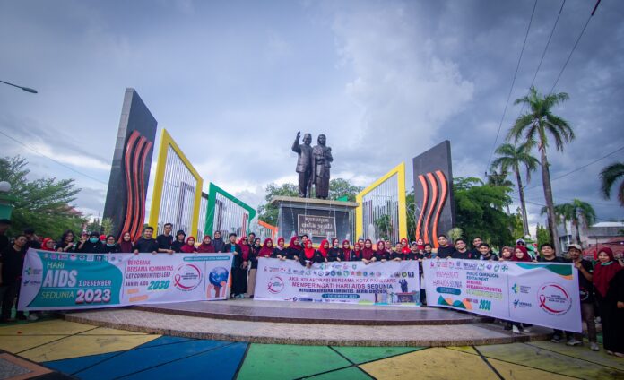 PAREPARE, RADIOMESRA. COM – Dinas Kesehatan Kota Parepare, YLP2EM mitra BaKTI pada Program INKLUSI, Yayasan Mitra Husada Distrik Parepare, PKVHI, Klinik Pratama Rumah Sehat Al-Kahfi, Seluruh Rumah Sakit di Kota Parepare, Puskesmas Se – Kota Parepare, Klinik Kesehatan, Apotik, Masyarakat Pemerhati dan Penggiat HIV menggelar aksi kolaborasi bersama dalam rangka memperingati hari AIDS sedunia, Jumat (01/12/23). Hari AIDS Sedunia mengusung tema global : Let Communities Lead dan Tema Nasional, Bergerak Bersama Komunitas Akhiri AIDS 2030.