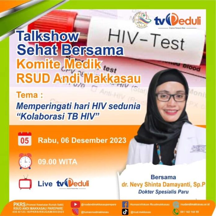 Talkshow Sehat kali ini mengangkat tema Memperingati Hari HIV Sedunia “Kolaborasi TB HIV”, yang tayang di TV Peduli, Rabu (06/12/23), mulai pukul 09.00 Wita.