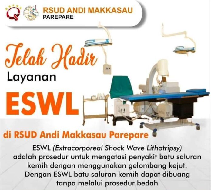 PAREPARE, RADIOMESRA. COM – Satu lagi terobosan dilakukan RSUD Andi Makkasau Kota Parepare, untuk meningkatkan pelayanan kepada masyarakat. Kali ini menghadirkan layanan ESWL bersama Dokter Spesialis, dr. Muh. Asykar Ansharullah Pallinrungi, Sp.U(k).
