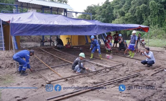 “Kalau sekarang sudah terjadi kejadian, atau tidak jalan. Pelanggan PDAM 21 ribu teriak di mana-mana, sementara armada Tanki cuma 2, itu tidak bisa dilayani berdasarkan antrian. Jadi salah satu jalan untuk melayani masyarakat, dengan cara seperti yang kami lakukan di Palopo, Penyuntikan. Kami suntik air di pipa distribusi kita. Jadi semua pelanggan yang berada di jaringan distribusi mendapatkan air. Kita sudah memanfaatkan menyampaikan ke pelanggan, agar supaya tidak dilayani perrumah, karena kadang air tumpah, air yang diambil masyarakat sedikit, karena tidak ada tandon, atau dipakai lagi mungkin kepentingannya cuma satu hari besok habis.” Jelas Dr. Kamaluddin