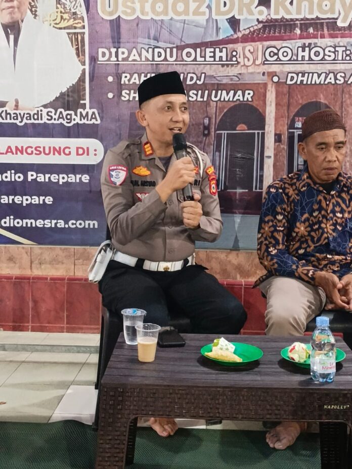 PAREPARE, RADIOMESRA. COM – Kasatlantas polres Parepare Akp. Muh. Arsyad menjadi salah satu narasumber pada kegiatan ngopi berjamaah edisi Jumat (17/0/5/26). Pada jamaah masjid raya, sosok.yang sebentar lagi mengakhiri tugasnya sebagai kasat lantas polres Parepare yang selanjutnya di Amanahkan bertugas di Polda Sulsel ini mengingatkan para pendengar radio mesra dan jamaah masjid raya untuk selalu berhati hati dan waspada bila berkendara.