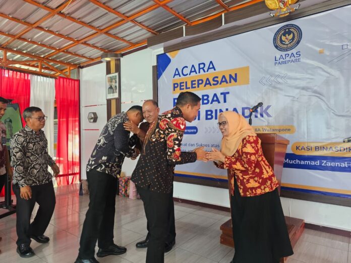 PAREPARE, RASIOMESRA. COM — Lembaga Pemasyarakatan Kelas IIA Parepare melaksanakan kegiatan pelepasan Kepala Seksi Bimbingan Narapidana dan Anak Didik (Kasi Binadik) atas nama Muchmad Zaenal Fanani. Kegiatan tersebut berlangsung khidmat di Tribun Lapas Kelas IIA Parepare dan dihadiri oleh Kepala Lapas Kelas IIA Parepare Marten, Bc.IP., S.H., M.H., jajaran pejabat struktural, seluruh pegawai, serta peserta magang. Jumat (17/04/26)