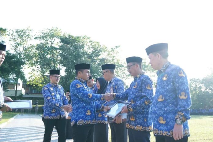 Penghargaan diserahkan Wali Kota Parepare pada saat upacara peringatan Hari Kesadaran Nasional (HKN) di Lapangan Binalipu, Senin, (20/04/26)